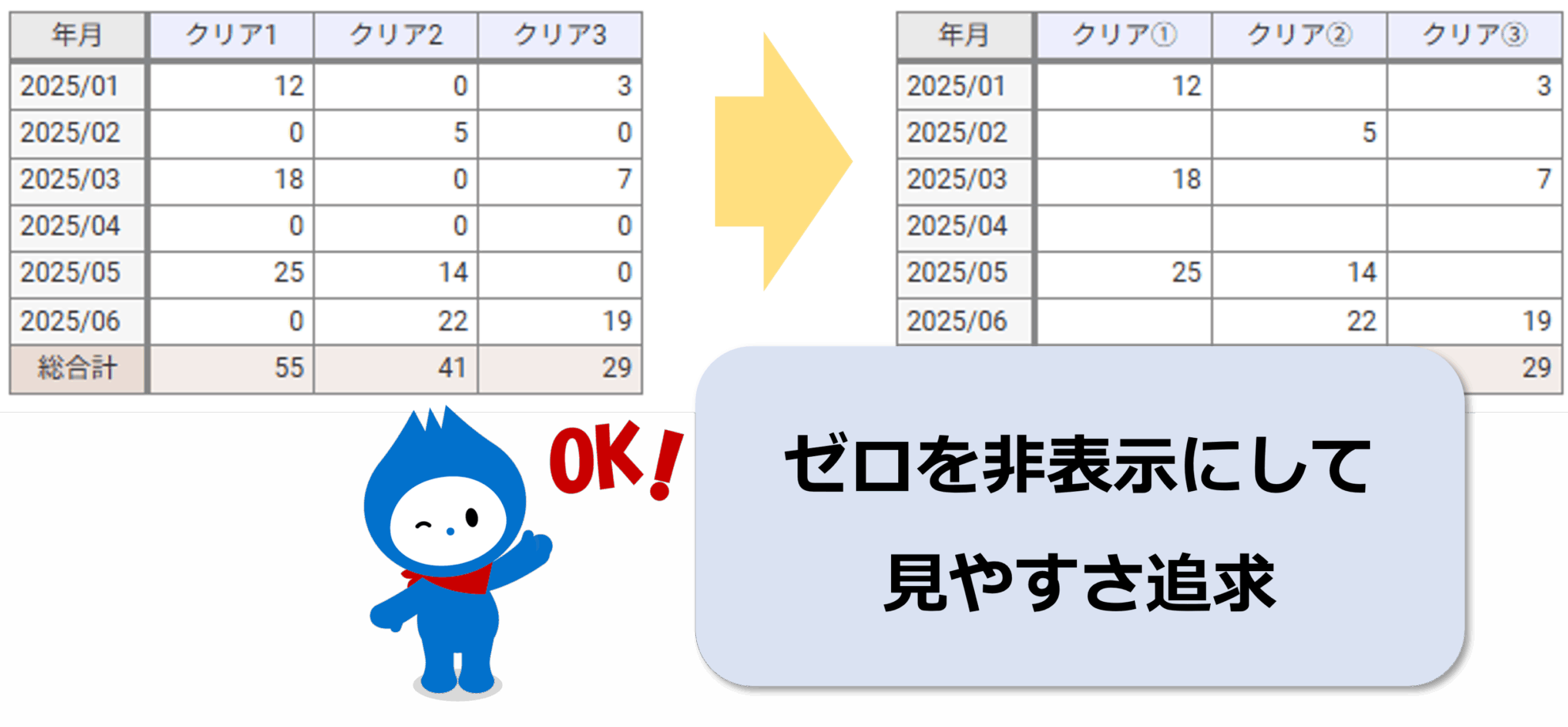 0を非表示にしてスッキリ!集計表のスマートな見せ方(事後計算編)