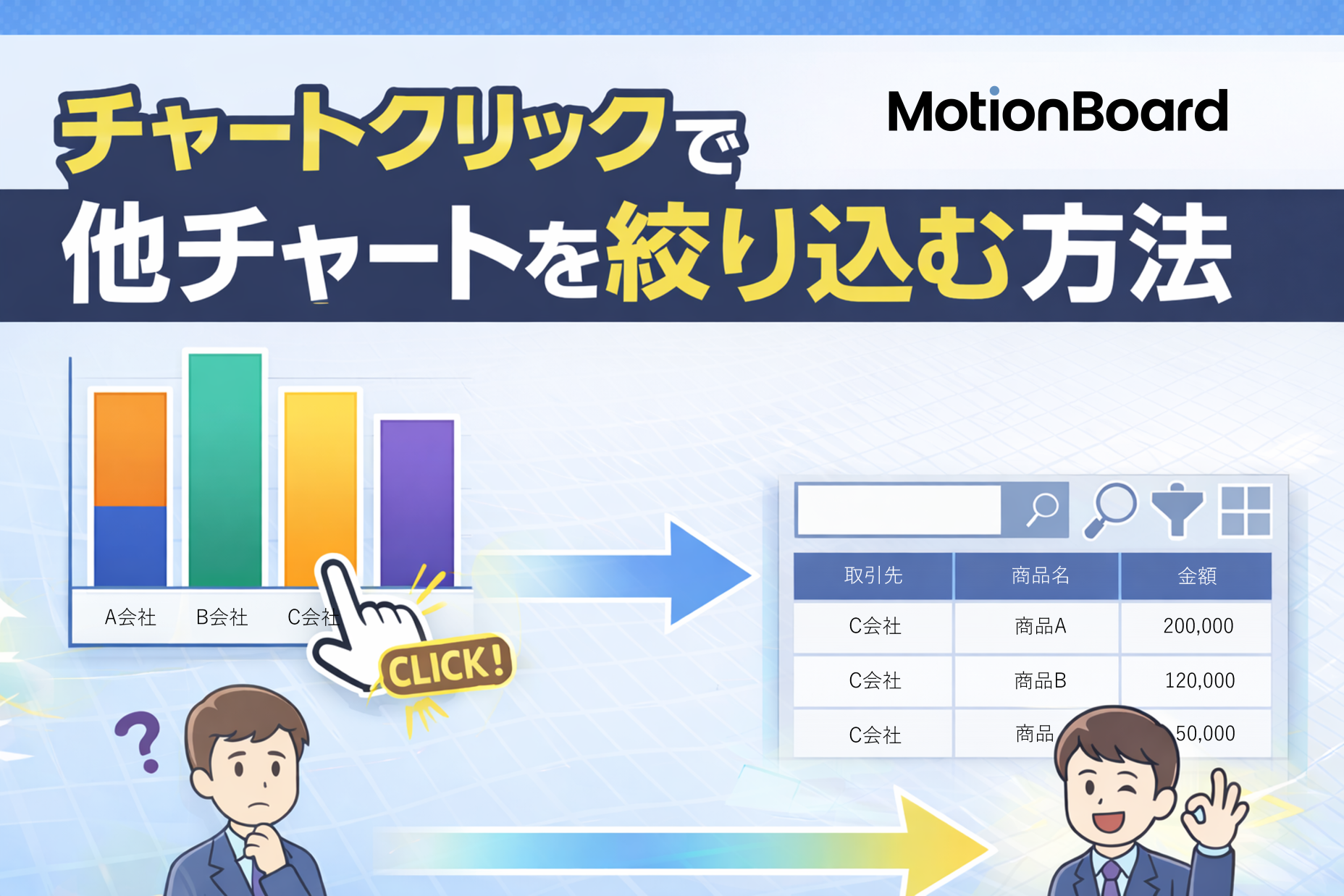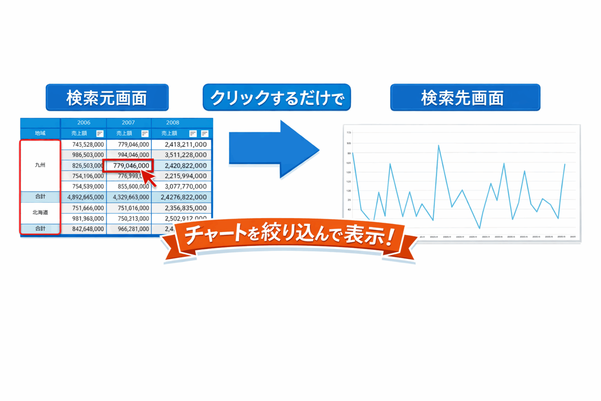 チャートをクリックした値で別ページのチャートを絞り込んで表示する方法